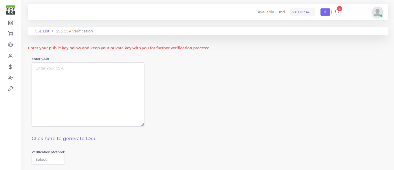11. Once you click on "enrol certificate" you will be redirected to the SSL CSR Verification page.